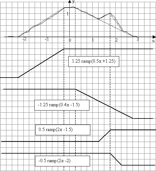 be approximated as a summation of four ramp functions.